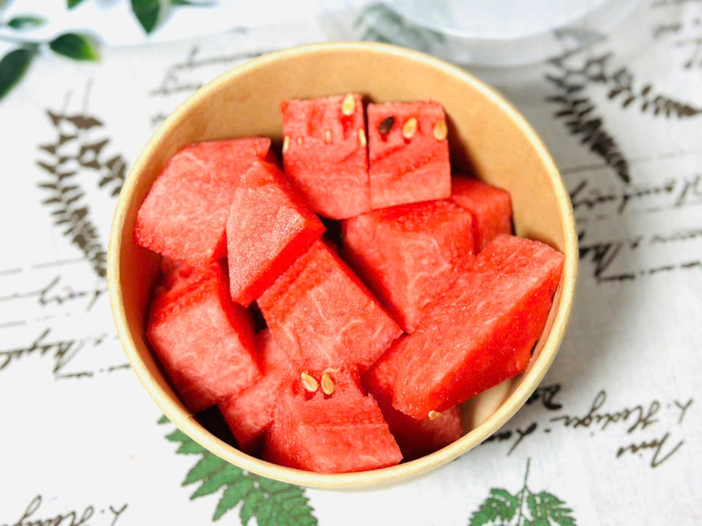 Cắt miếng vừa ăn, hộp giấy sạch sẽ tiện lợi. Dưa hấu Long An mát lạnh, ngọt đậm vị