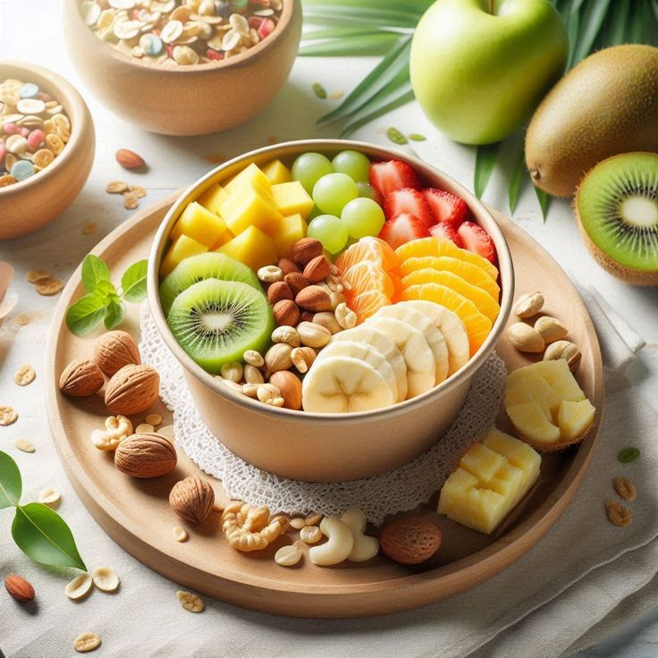 Hộp trái cây năng lượng: Được thiết kế đặc biệt với những loại trái cây giàu năng lượng như chuối, táo, nho, mang đến nguồn năng lượng dồi dào giúp bạn duy trì sự tỉnh táo và tập trung trong công việc.
